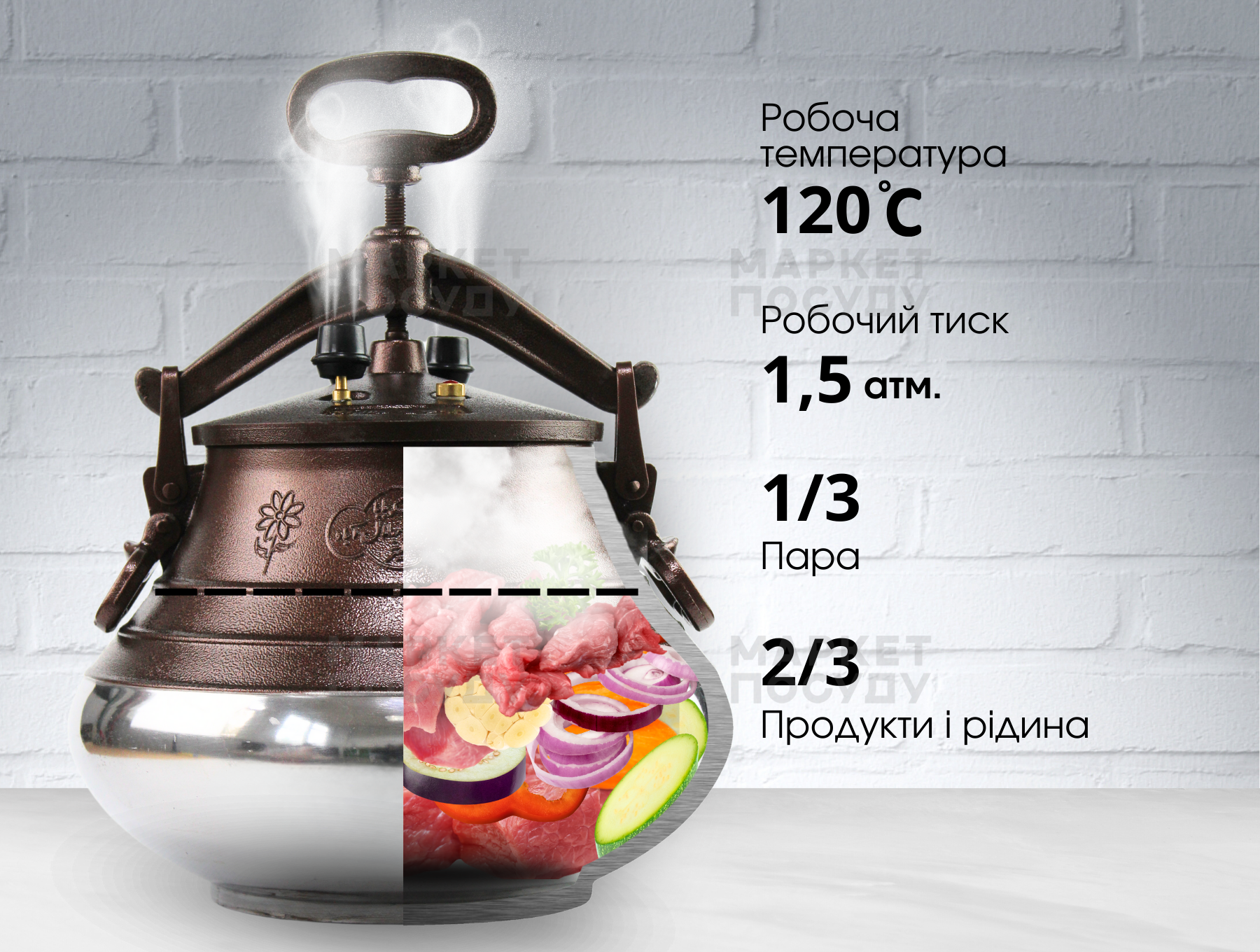 Виробник: RASHKO BABA LtdФактичний об'єм 16 л Товщина стінок 8-11мм Робочий тиск 1.5 атм Робоча температура 120 °C Діаметр верх 170-190 мм Діаметр центр 330 мм Діаметр низ 205 мм Висота з ручкою(коромислом) 400 мм