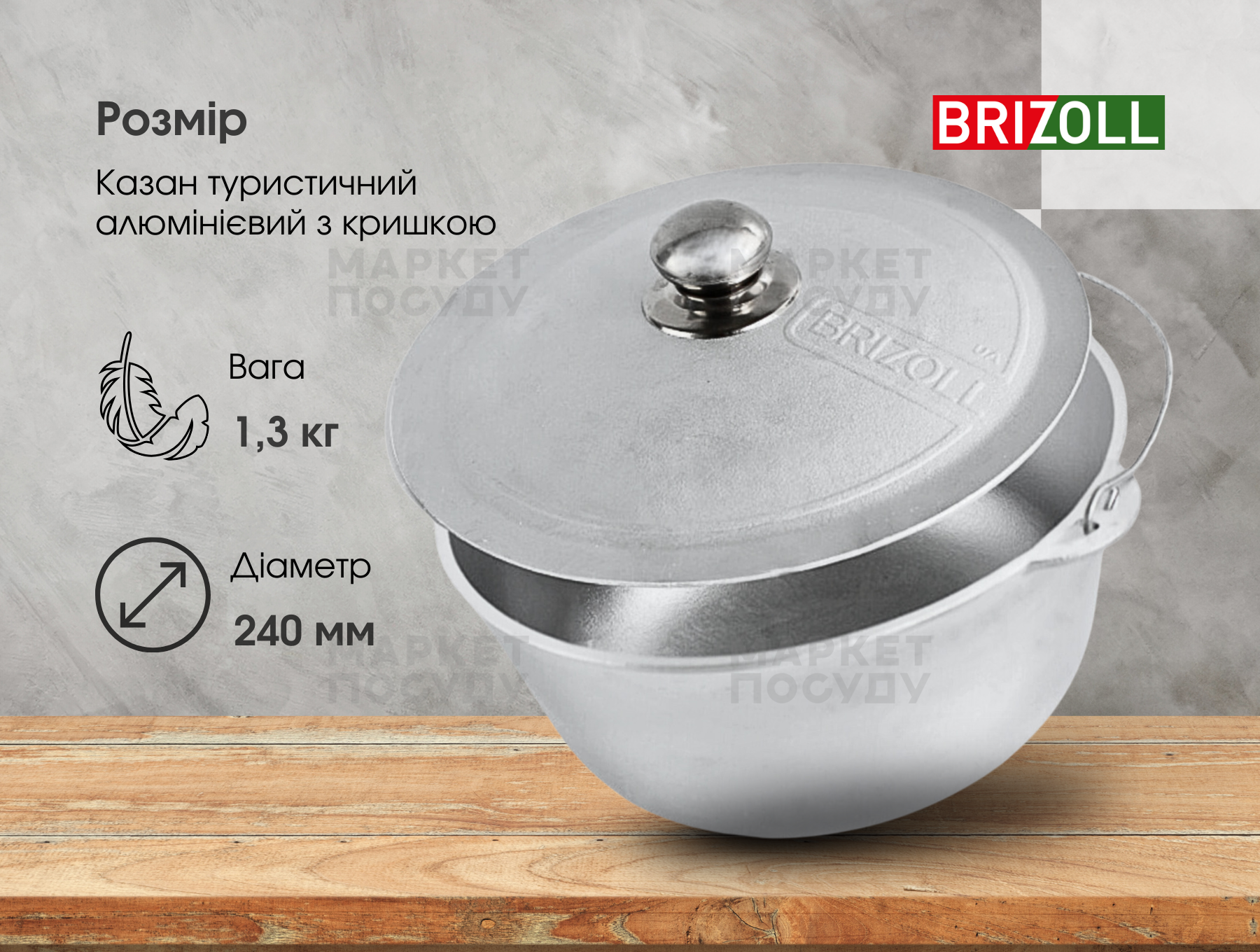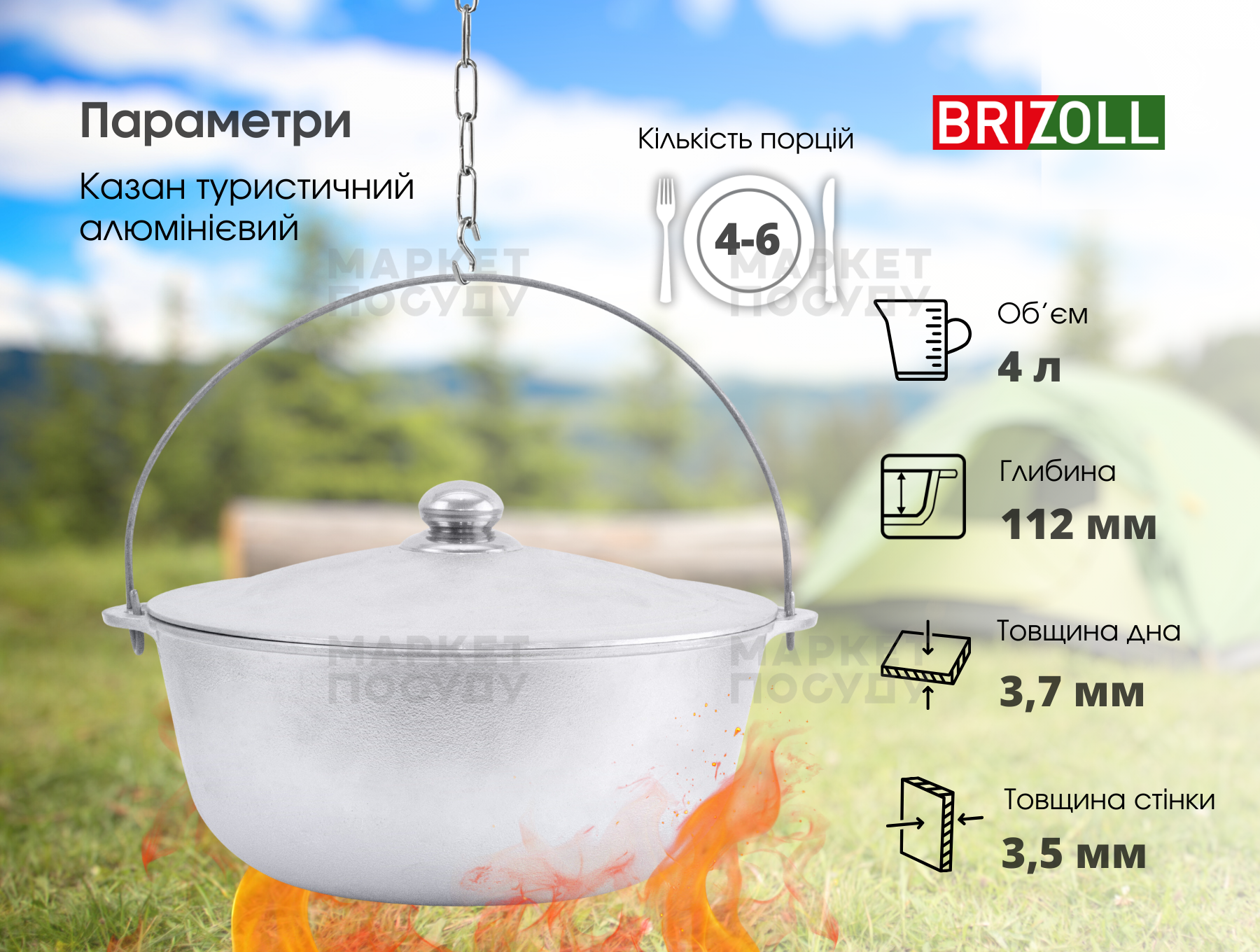Казан алюмінієвий 4 л Brizoll Туристичний з дужкою та кришкою (12-004-1)