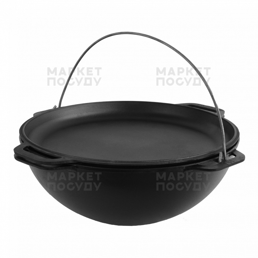 Казан чавунний 10 л Brizoll Азійський з дужкою та кришкою-сковородою гриль (KA10-3)