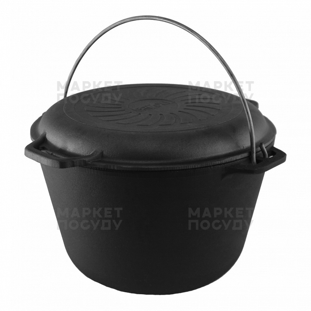 Казан чавунний 8 л Brizoll Туристичний з дужкою та кришкою-сковородою (КТ08-2)