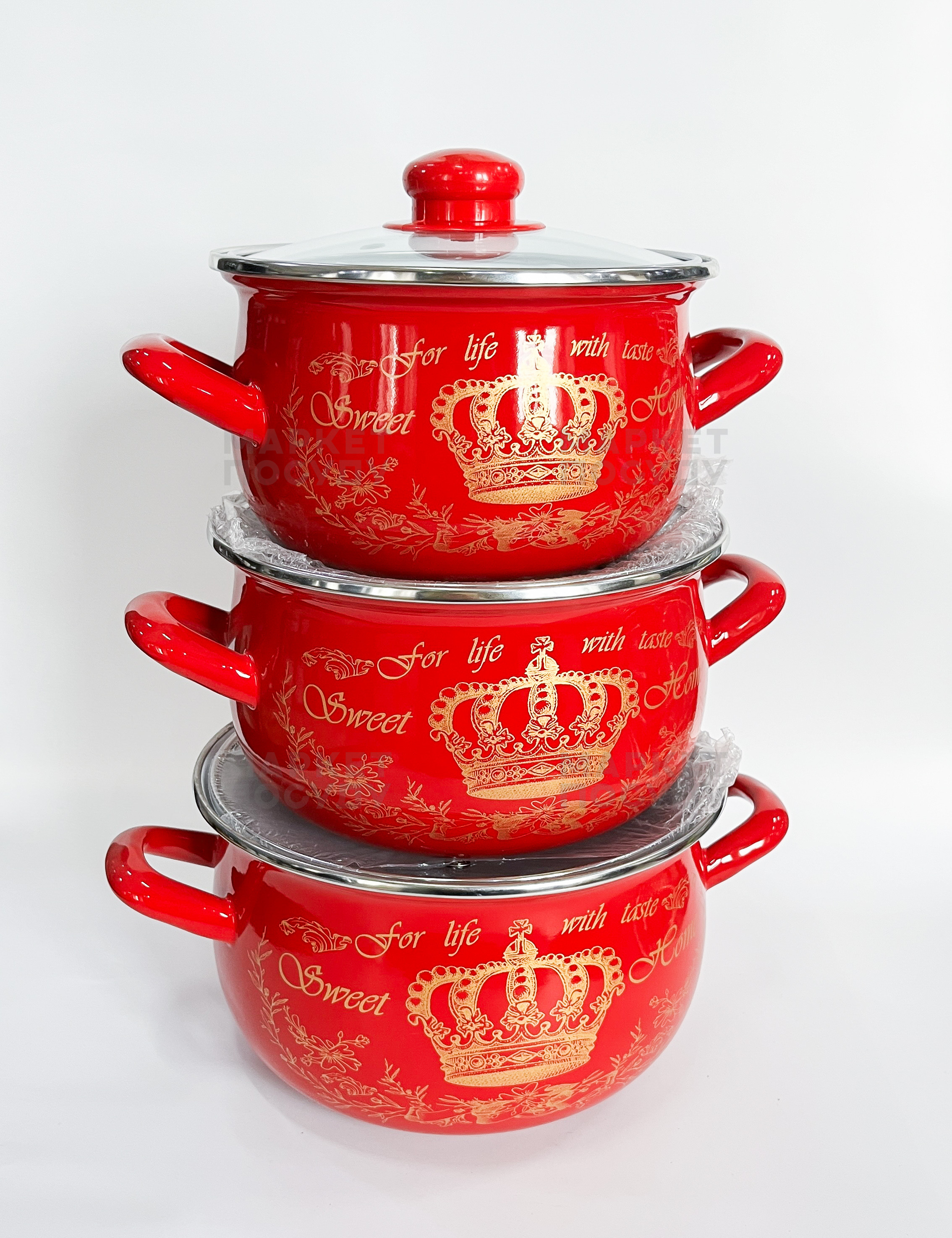 Набір емальованих каструль Interos Корона червона 3 пр (4018А)