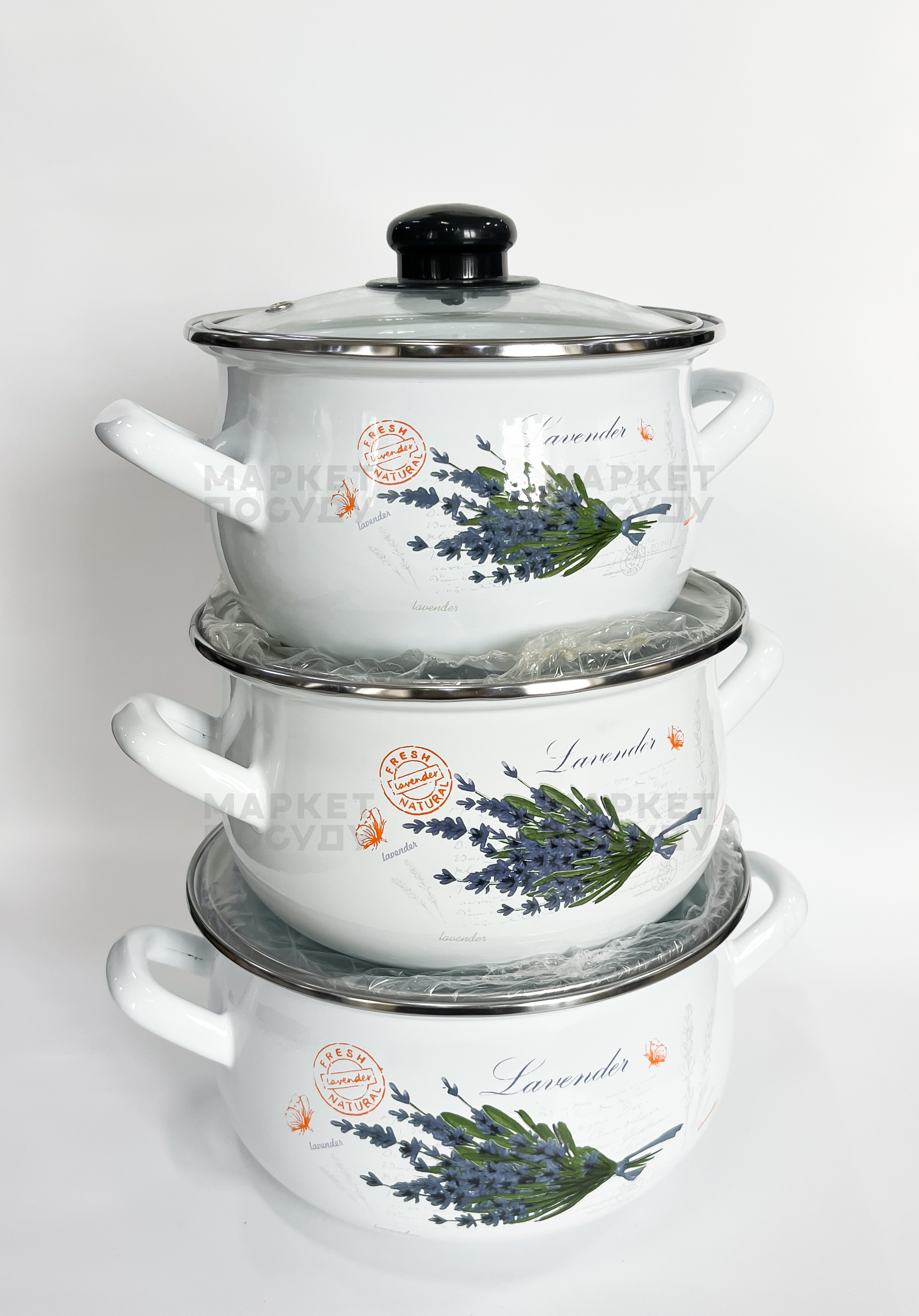 Набір емальованих каструль Interos Лаванда 3 пр (574)
