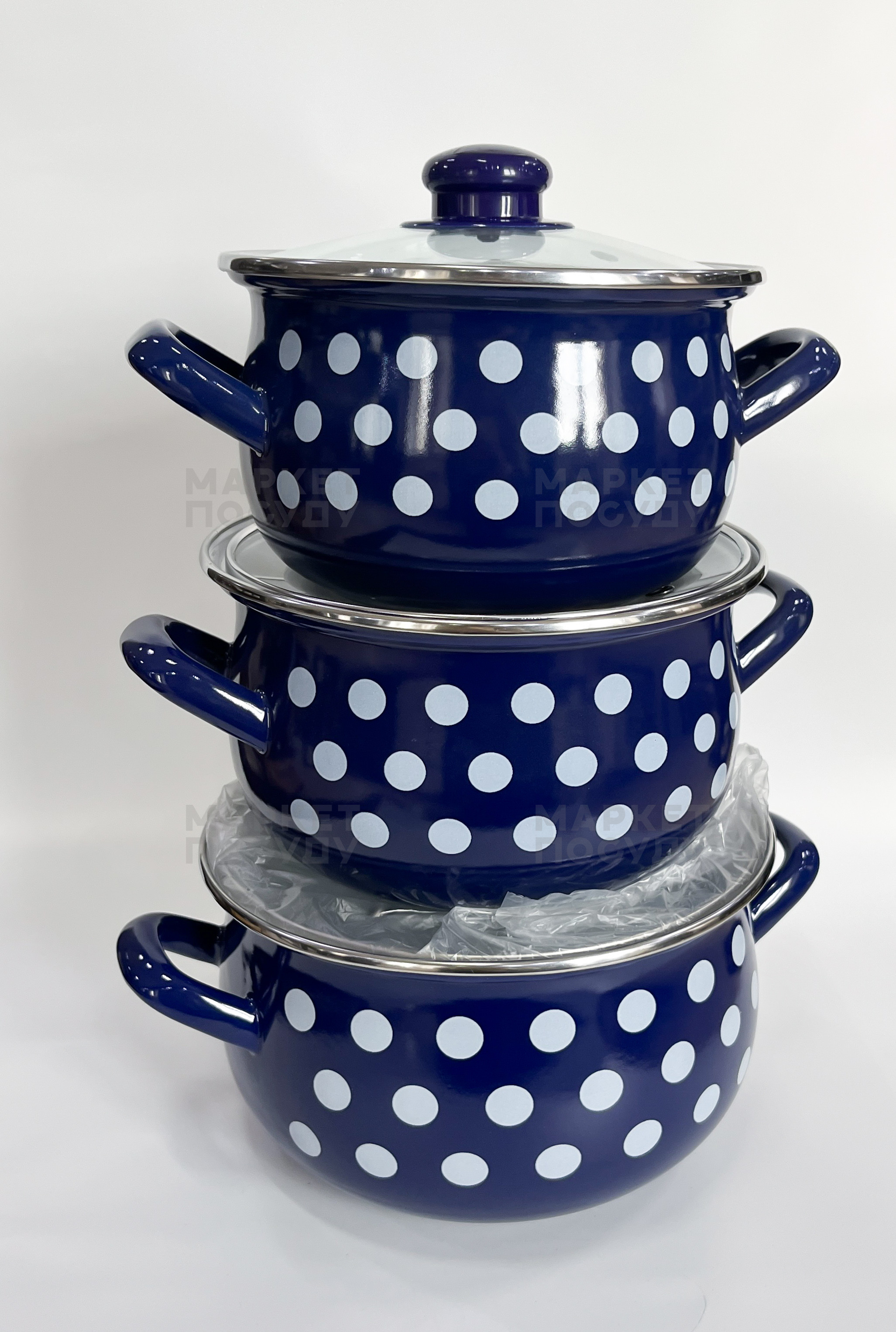 Набір емальованих каструль Interos Синій горох 3 пр (558BLUE)