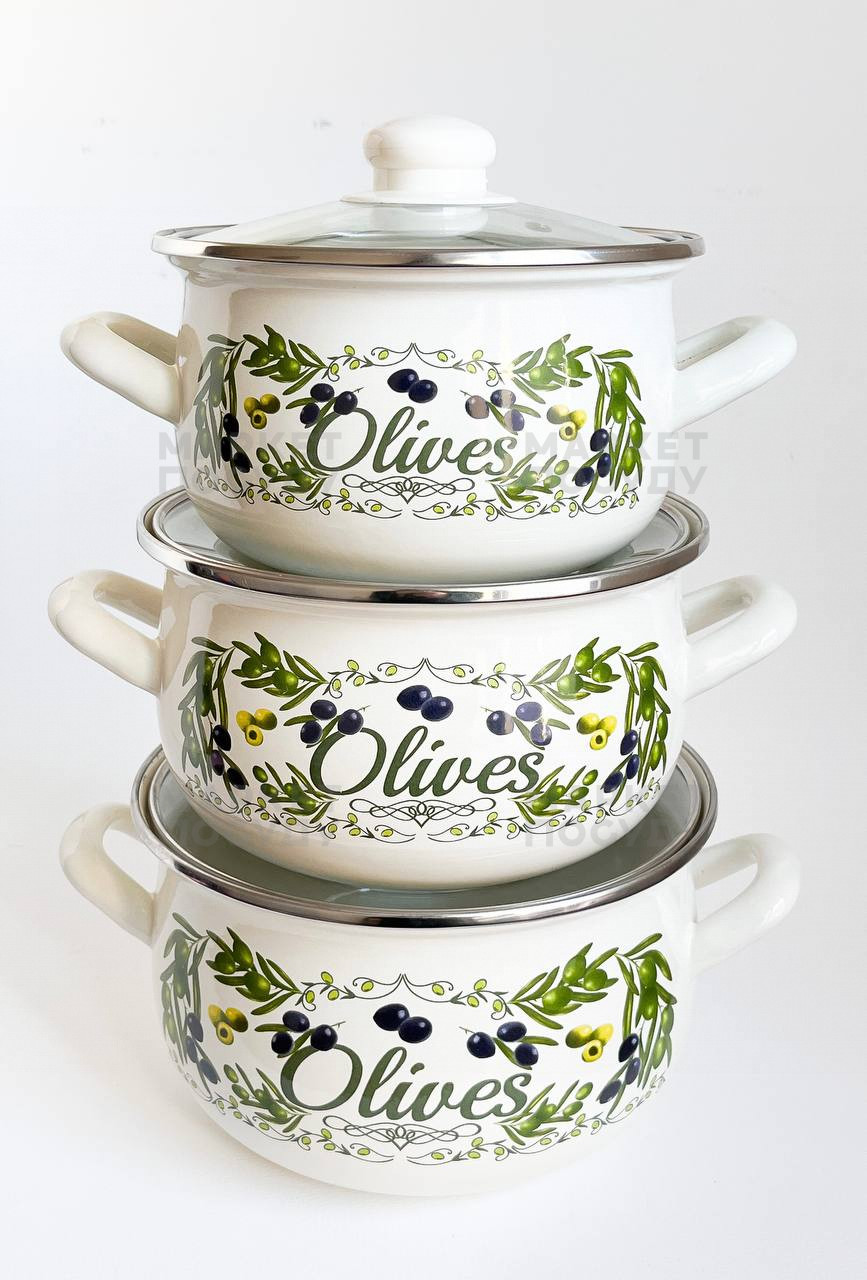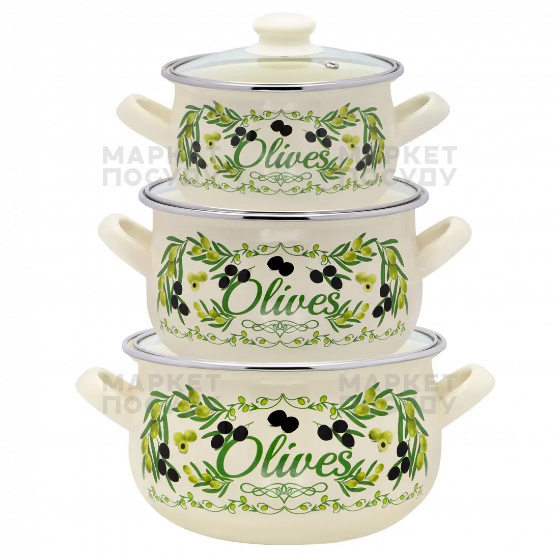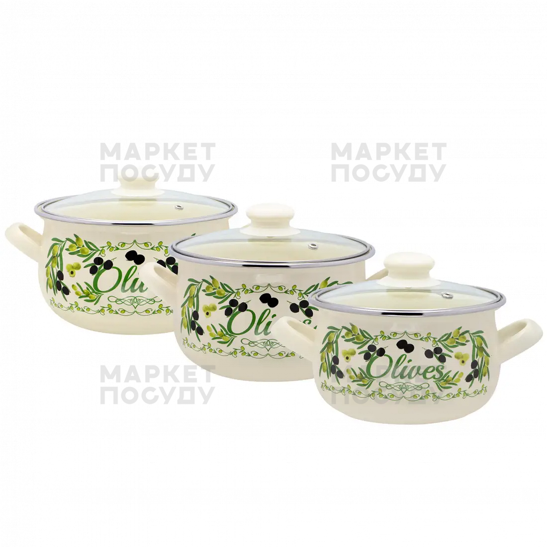 Набір емальованих каструль Interos Грецька оливка 3 пр (567A)