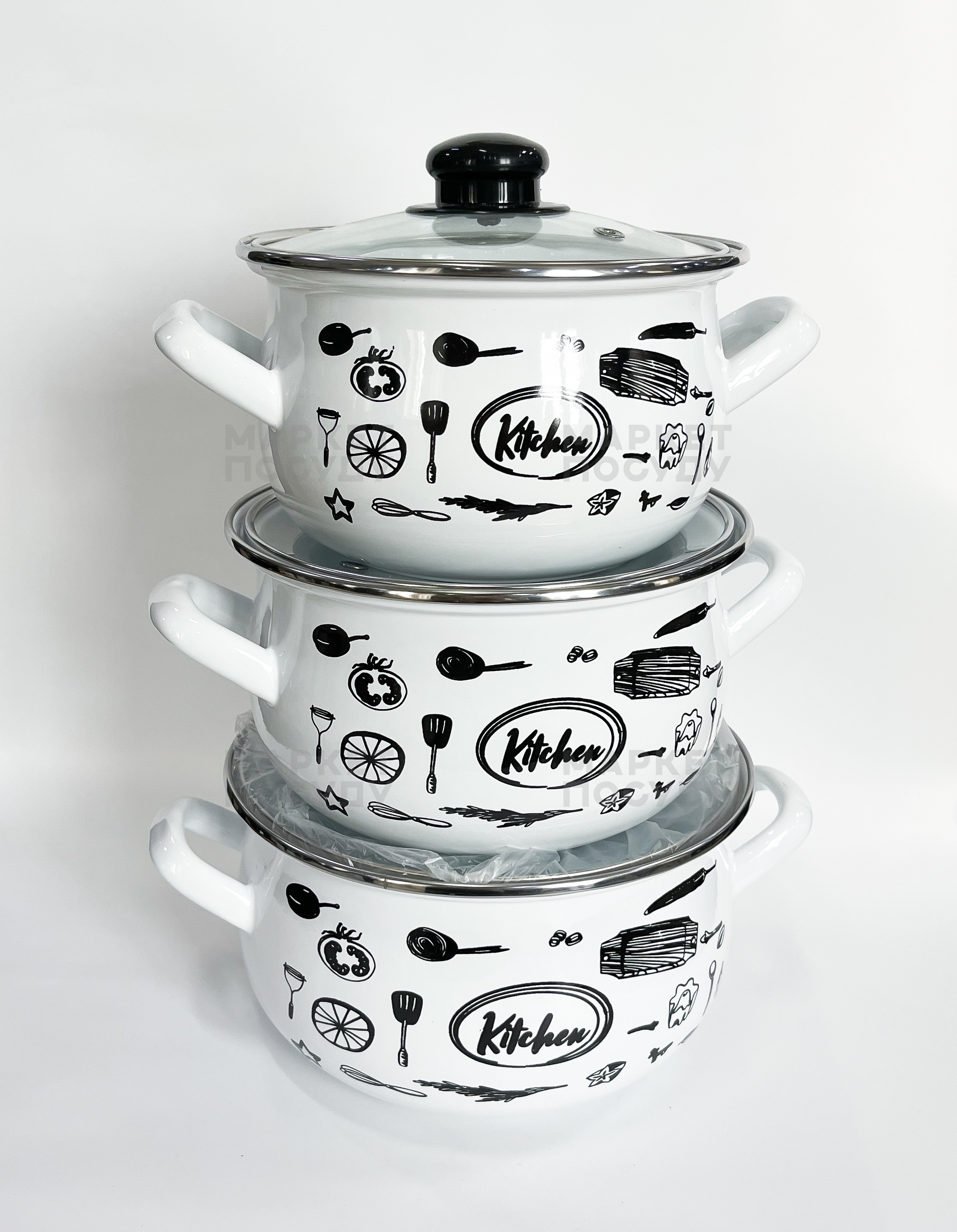 Набір емальованих кастрюль Interos Kitchen WHITE 3 пр (704)