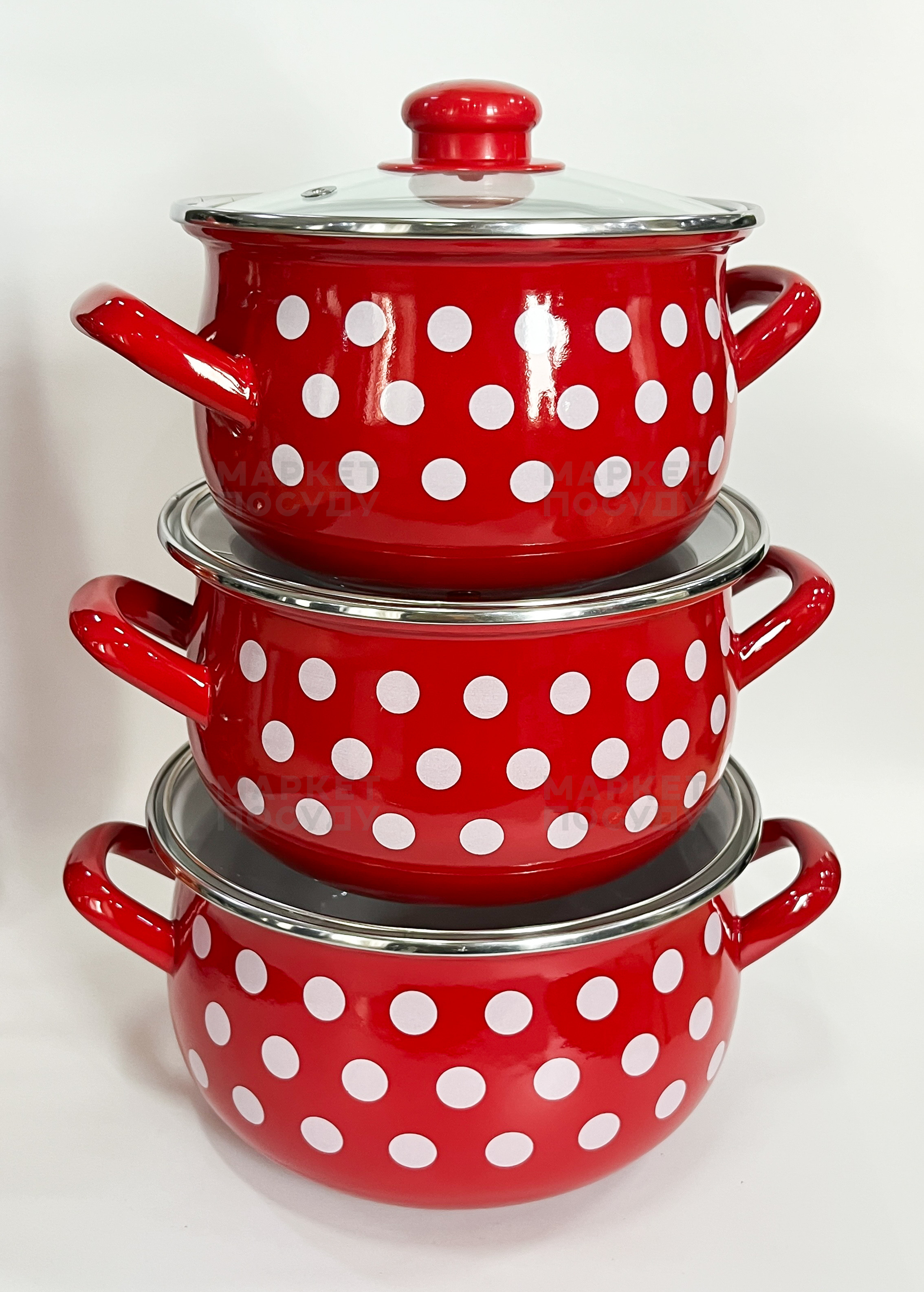 Набір емальованих каструль Interos Червоний горох 3 пр (558RED)