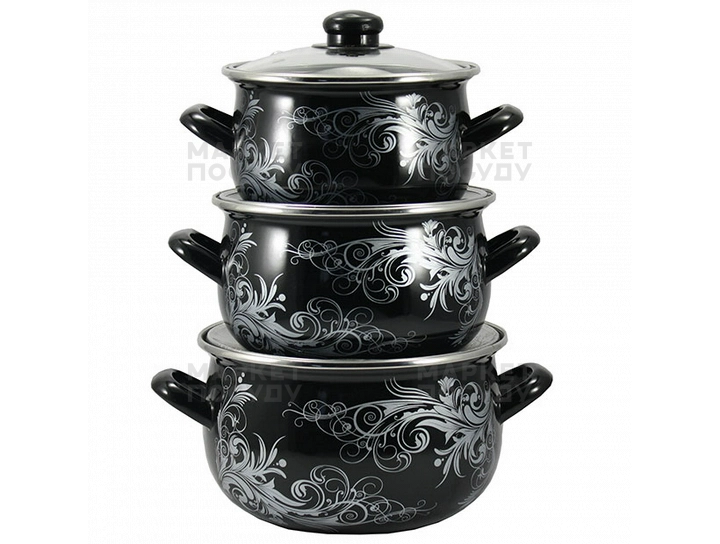 Набір емальованих каструль торгової марки Interos виконані з сучасного дизайну з якісної вуглецевої сталі з подвійним покриттям з стеклоэмали. Мають жаростійку скляну кришку з пароотводом і зручні ручки, які не нагріваються.