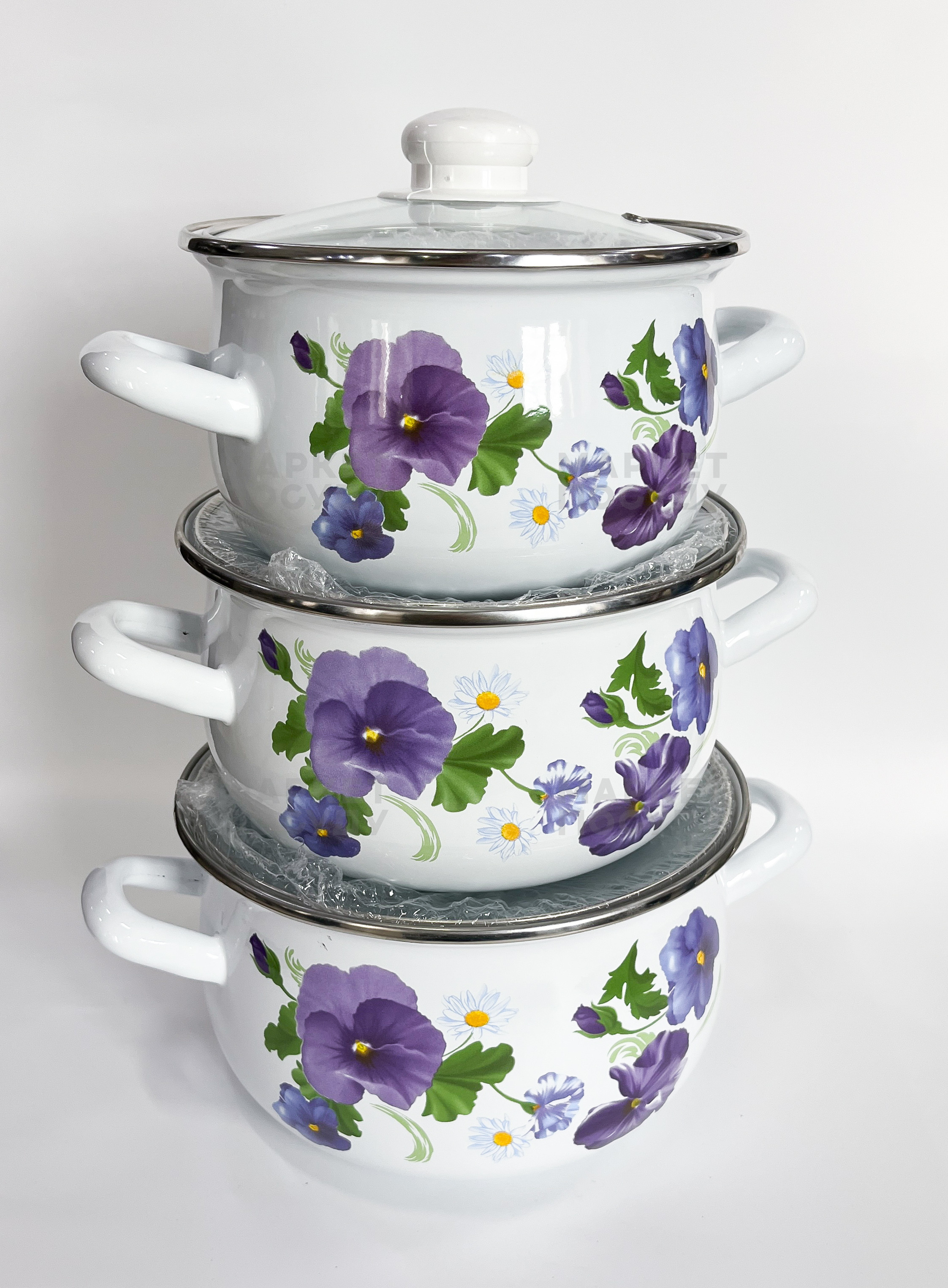 Набір емальованих каструль Interos Фіалка 3 пр (2999)