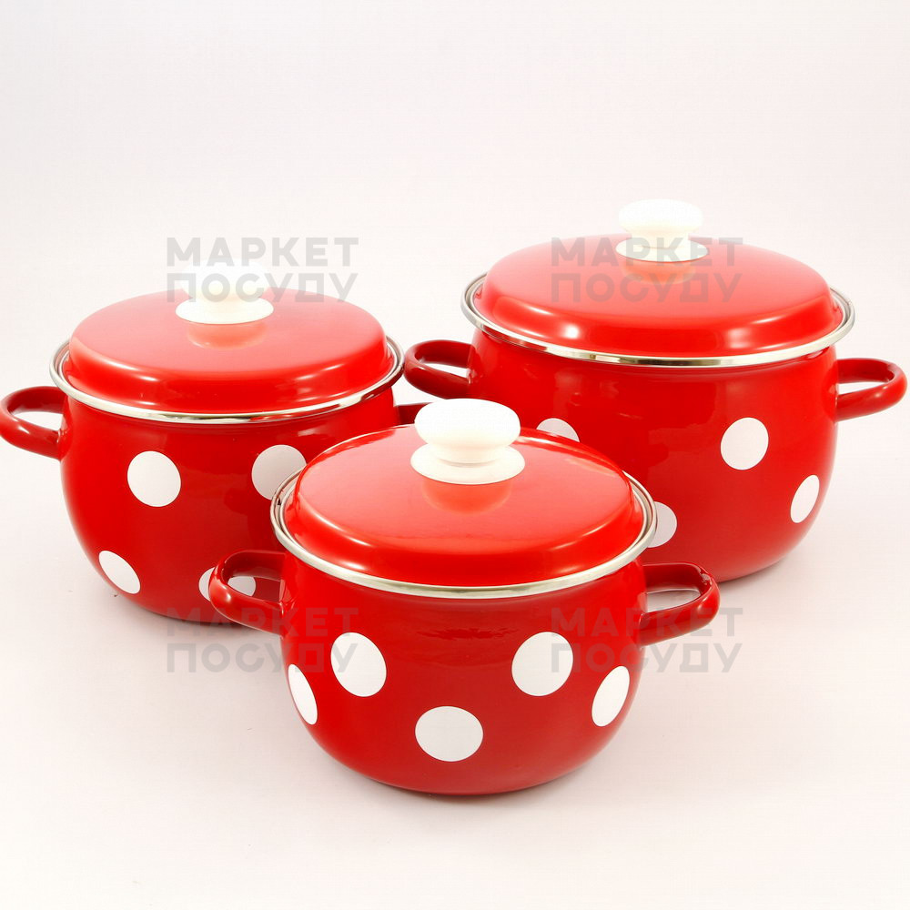 Набір посуду Idilia Білий горох 6 пр (червоний) (946)