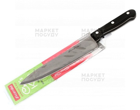 Удобный и практичный кухонный нож из нержавеющей стали с нескользящей бакелитовой ручкой. Лезвие и рукоятка отлично сбалансированы, поэтому нож очень удобный в эксплуатации и легко ложится в руку