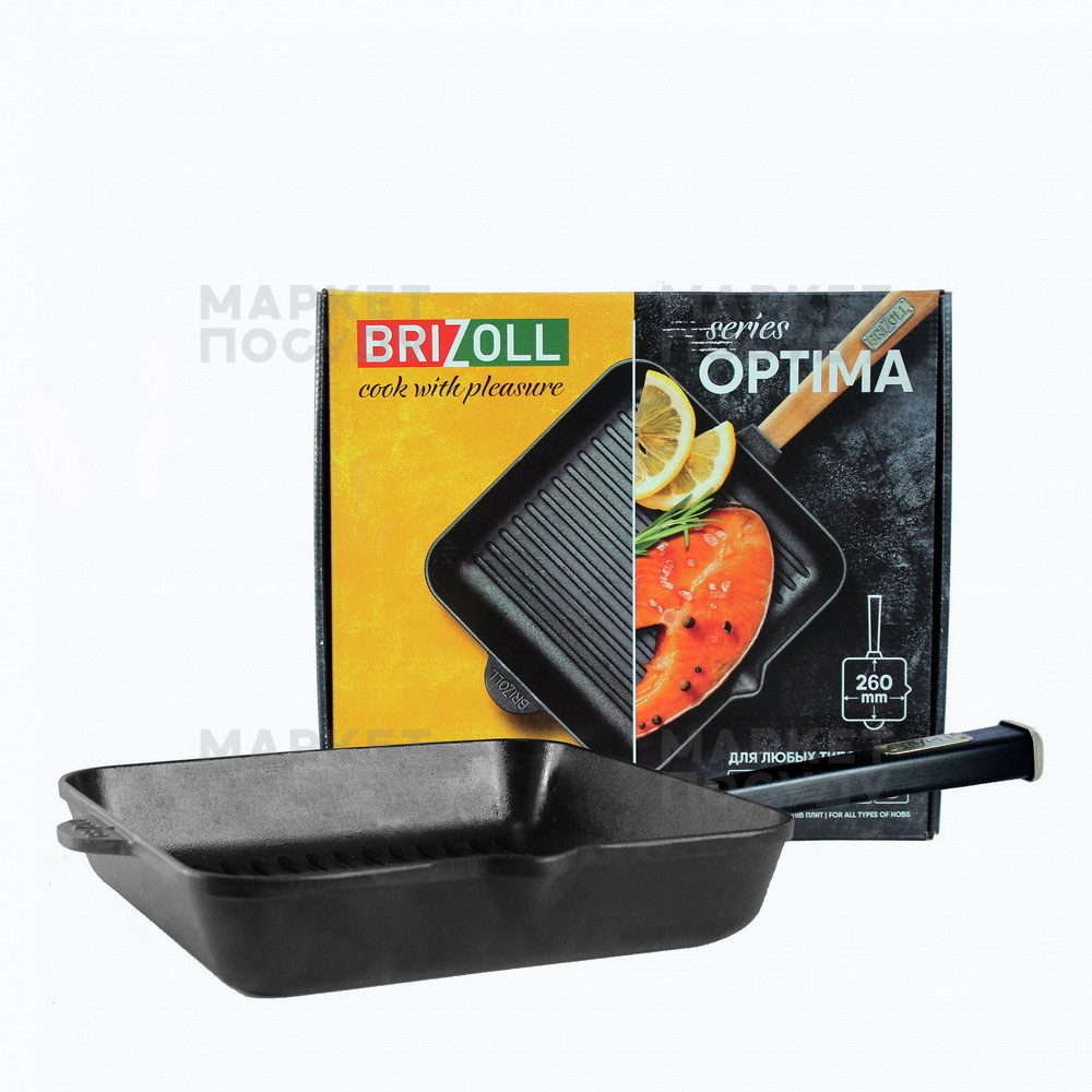 Сковорода-гриль Brizoll Optima 26 см чавунна чорна (О262650Г-Р1)