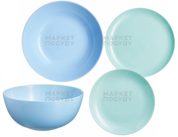 Сервіз столовий Luminarc Diwali Light Turquoise & Blue 19пр (P4359), Колір: светло-бирюзовый / голубой, фото