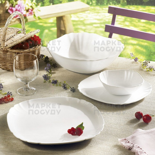 Скляний столовий сервіз від французького бренда Luminarc виготовлений із теплостійкого скла, створеного за особливими технологіями плавлення: здатний витримати навіть найвищу температуру — у 100 градусів і більше.