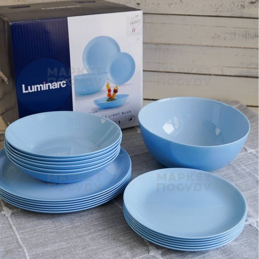 Столовий посуд Luminarc виготовляється із загартованого скла, в процесі виготовлення зміцнені більш ніж в три рази в порівнянні зі стандартним склом. Так само до плюсів даного матеріалу можна віднести абсолютно гладку поверхню, що перешкоджає проникненню бактерій і сторонніх запахів в посуд. Посуд Luminarc можна використовувати в мікрохвильовій печі, а так само мити впосудомоечной машині. Посуд розроблена для постійного використання, малюнок не втрачає яскравість, поверхня відмінно тримає тепло.
