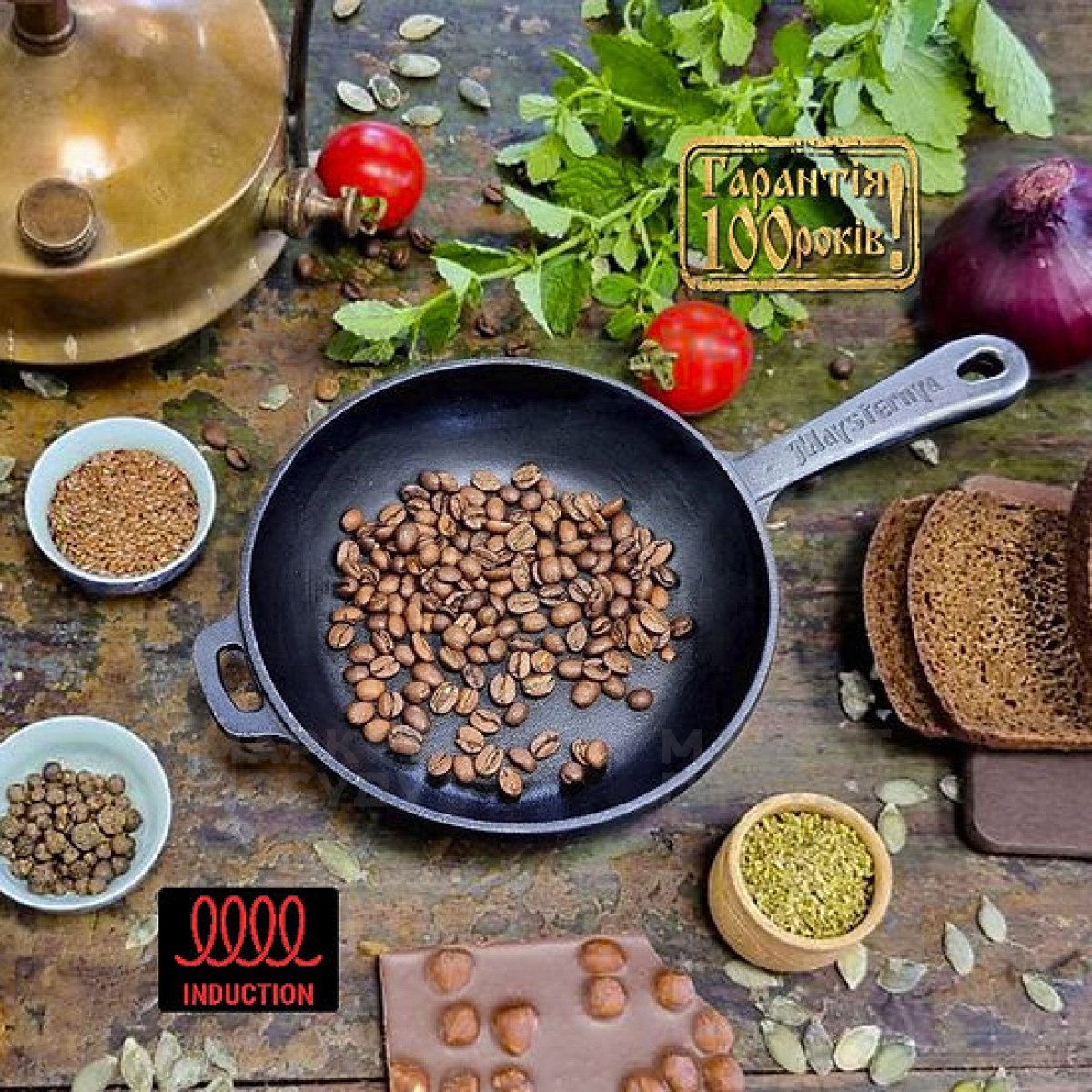 Сковорода універсальна Maysternya 16 см чавунна чорна (T201УК)