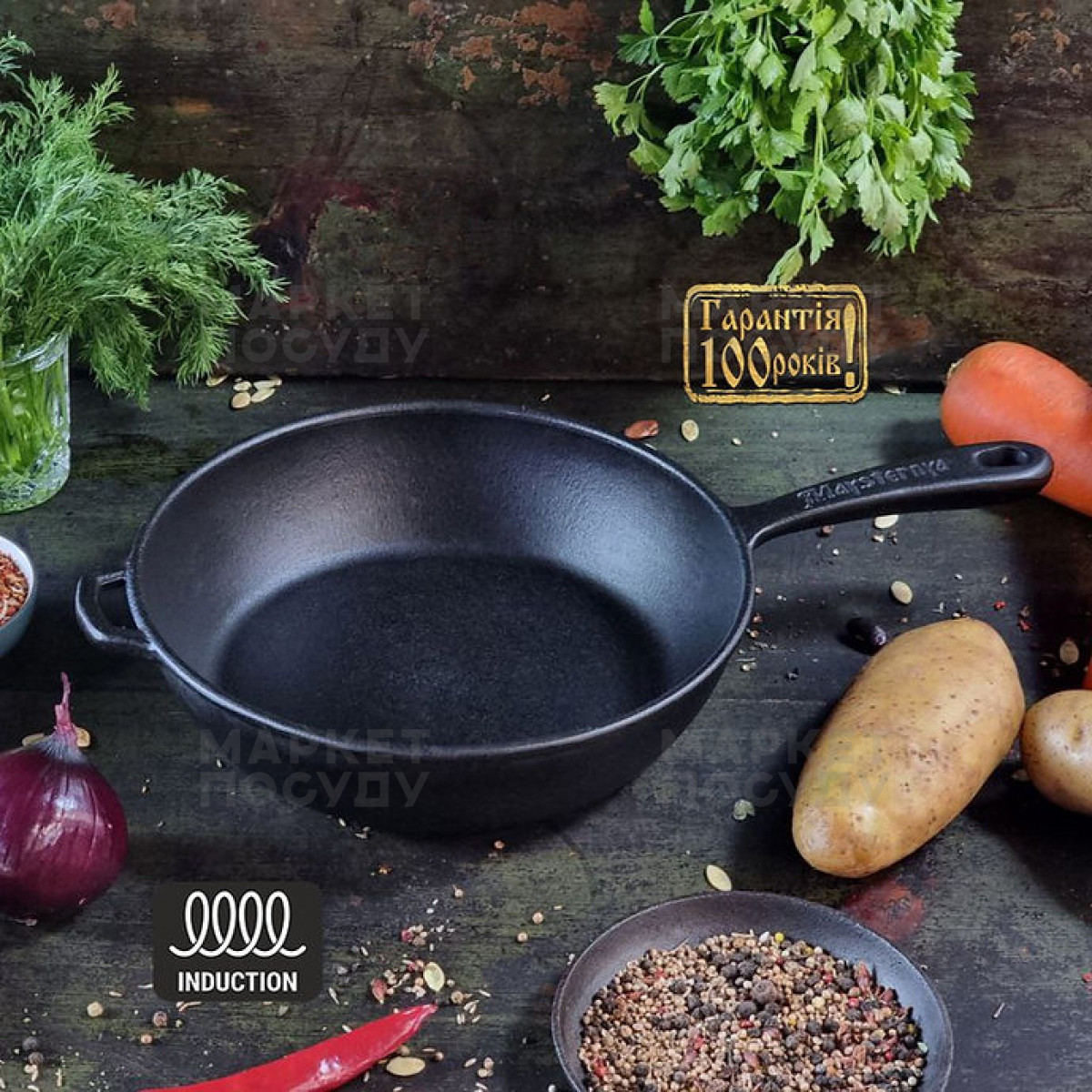 Чавунна структура гарантує відмінну теплоємність і допомагає зберігати аромат і смак страви.
