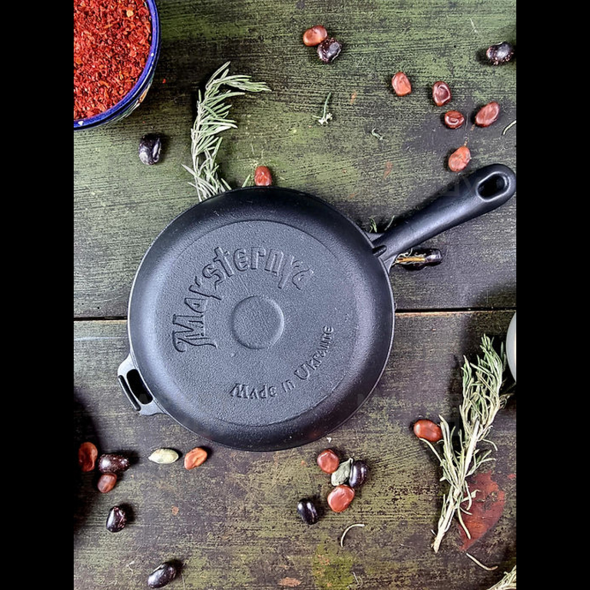 Чавунна сковорода Maysternya, 24 см (Т202) — це чудовий вибір для тих, хто цінує довговічність і універсальність на кухні.