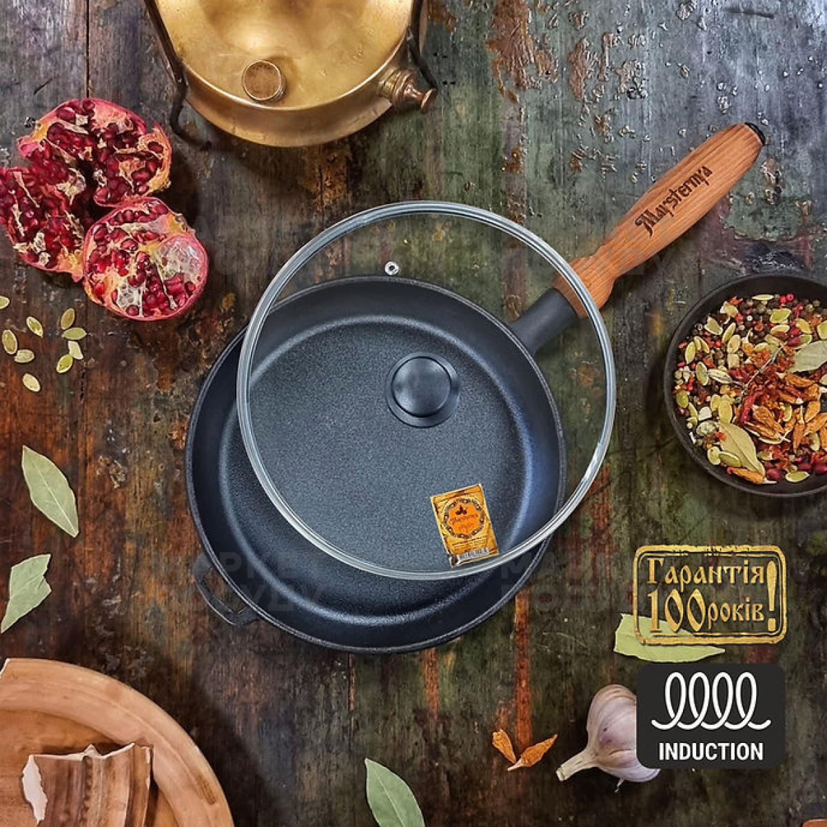 Сковорода універсальна Maysternya 26 см чавунна чорна (T303СЗУк)