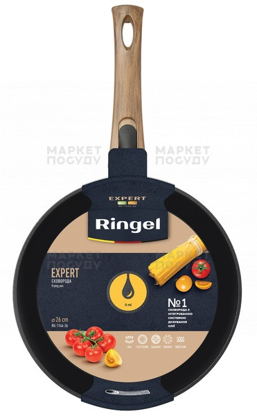 Серія сковорідок Expert від Ringel – це відмінний варіант як для приготування страв із соусів, самих соусів та гасіння завдяки високим бортикам, так і чудовий посуд для розігріву. Виготовлені з високоякісного кованого алюмінію, дані сковороди є міцним посудом із швидким та рівномірним нагріванням. Дно сковорідок цієї серії має додаткове потовщення до 4 мм, порівняно зі стінками 3 мм. У даній серії використовується надстійке трикульове антипригарне покриття, що дозволяє використовувати менше масла при приготуванні.