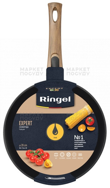 Серія сковорідок Expert від Ringel – це відмінний варіант як для приготування страв із соусів, самих соусів та гасіння завдяки високим бортикам, так і чудовий посуд для розігріву. Виготовлені з високоякісного кованого алюмінію, дані сковороди є міцним посудом із швидким та рівномірним нагріванням. Дно сковорідок цієї серії має додаткове потовщення до 4 мм, порівняно зі стінками 3 мм. У даній серії використовується надстійке трикульове антипригарне покриття, що дозволяє використовувати менше масла при приготуванні.