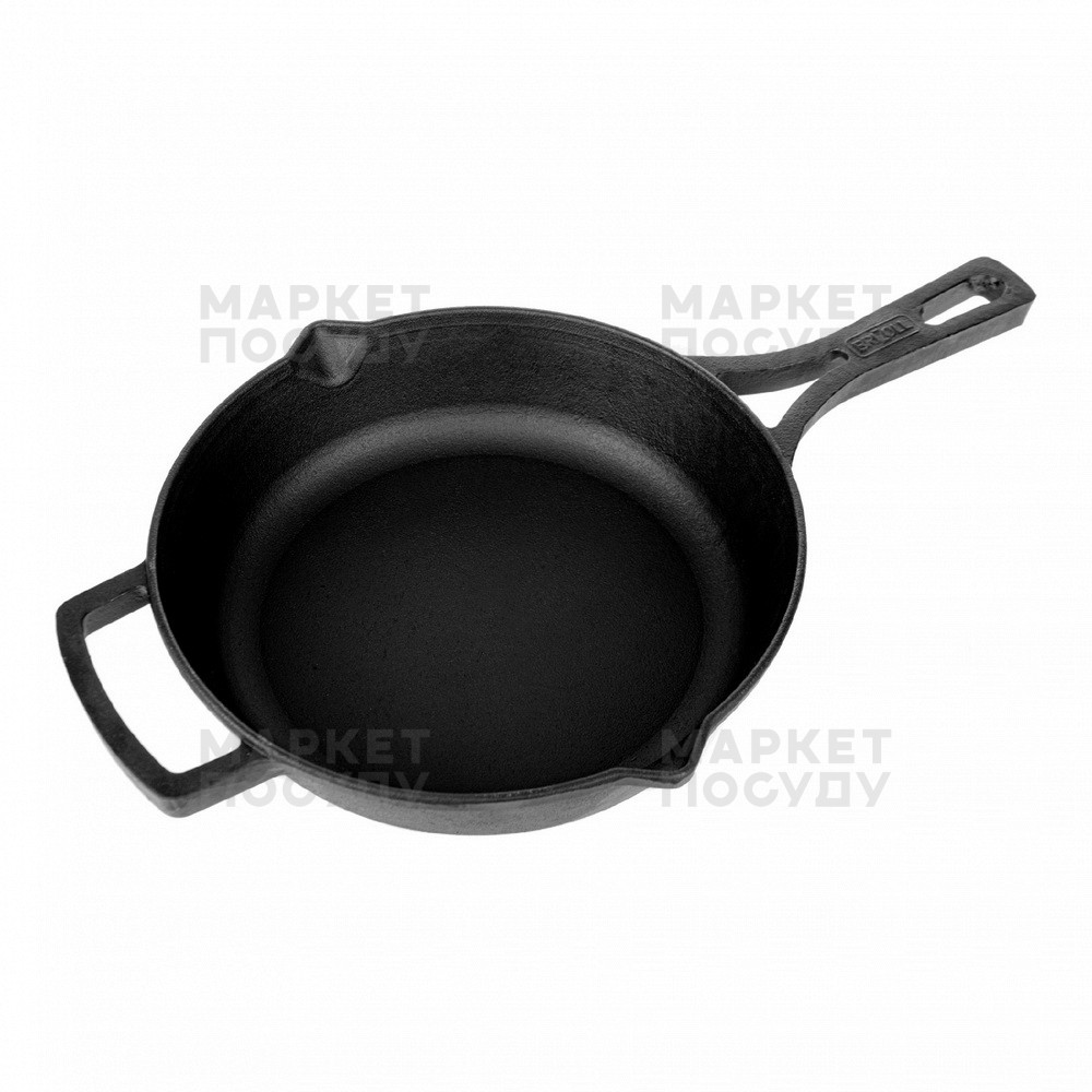 Чавунні сковорідки з литою ручкою представлені у двох популярних діаметрах 240 та 260 мм. Вважаються найбільш практичними та універсальними, адже підходять для смаження, запікання та використання на відкритому вогні.