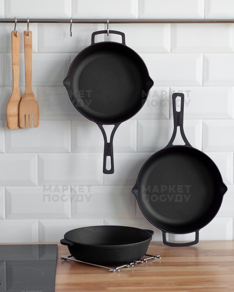 У ній можна приготувати все: від яєчні м'яса, овочів до соусів і навіть пирогів. Зберігати таку сковорідку теж зручно, її легко можна причепити за ручку або чавунне вушко.