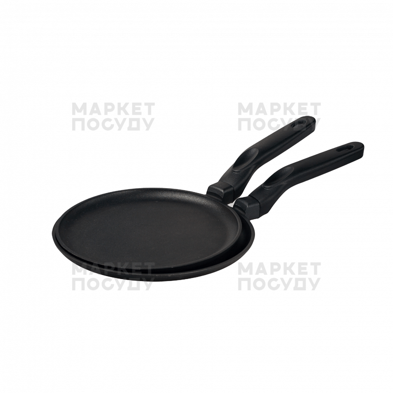 Бакелітова ручка чорного кольору зручно лежить у руці та не нагрівається, забезпечуючи комфортну й безпечну роботу навіть під час тривалого готування. Завдяки антипригарному покриттю ви можете смажити млинці з мінімальною кількістю олії, отримуючи здорові та смачні страви без зайвого жиру.