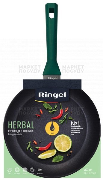 Серія сковорідок Herbal від Ringel – це відмінний варіант як для приготування страв із соусів, самих соусів та гасіння завдяки високим бортикам, так і чудовий посуд для розігріву. Виготовлені з високоякісного кованого алюмінію, дані сковороди є міцним посудом із швидким та рівномірним нагріванням. Дно сковорідок цієї серії має додаткове потовщення до 4 мм, порівняно зі стінками 3 мм. У даній серії використовується надстійке тришарове покриття, яке дозволяє використовувати менше масла при приготуванні.