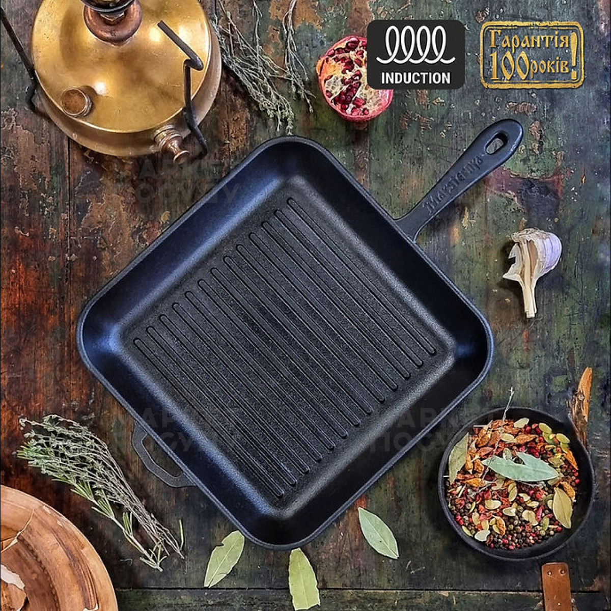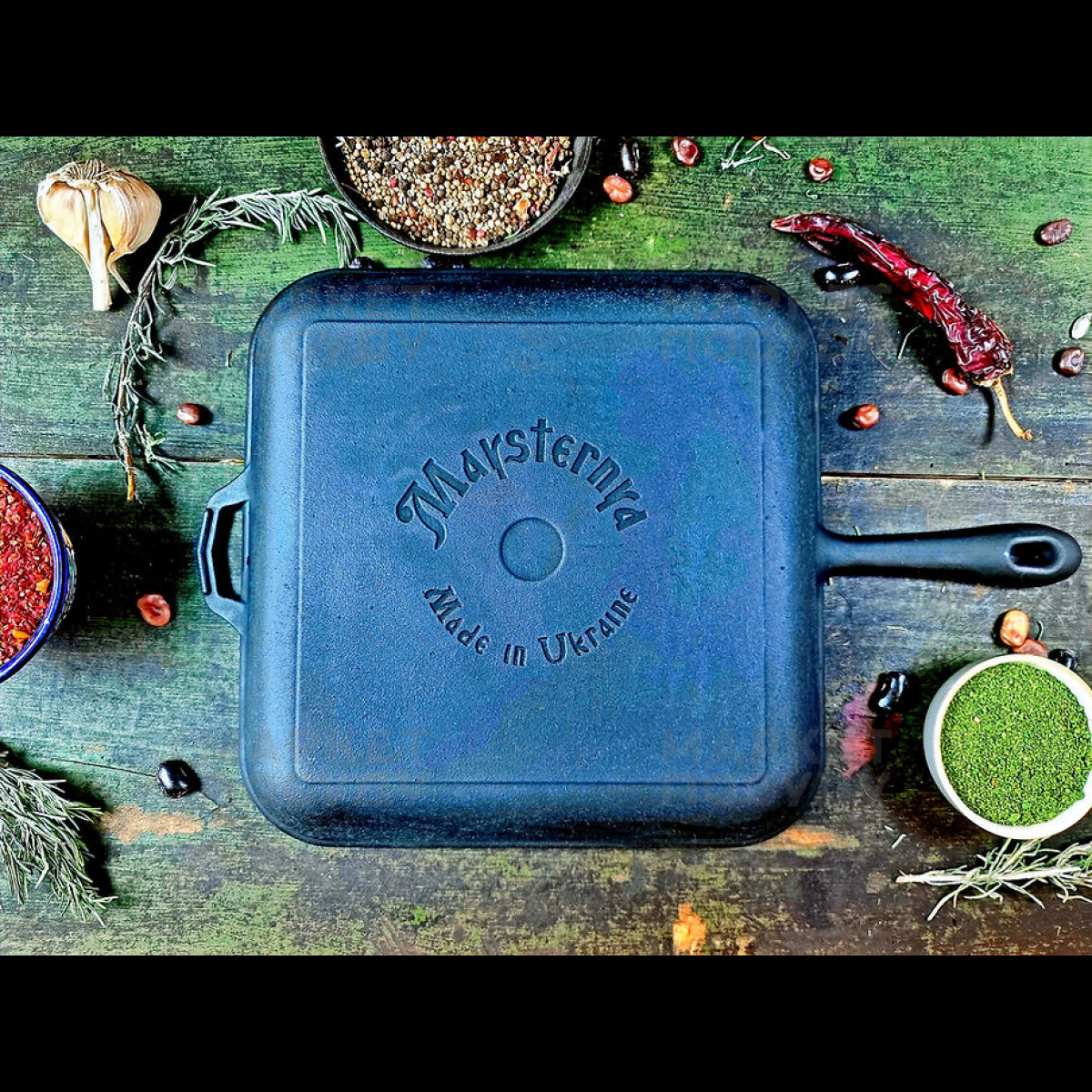 Сковорода-гриль Maysternya 28 см чавунна чорна (280-280-40MRgrillУк)