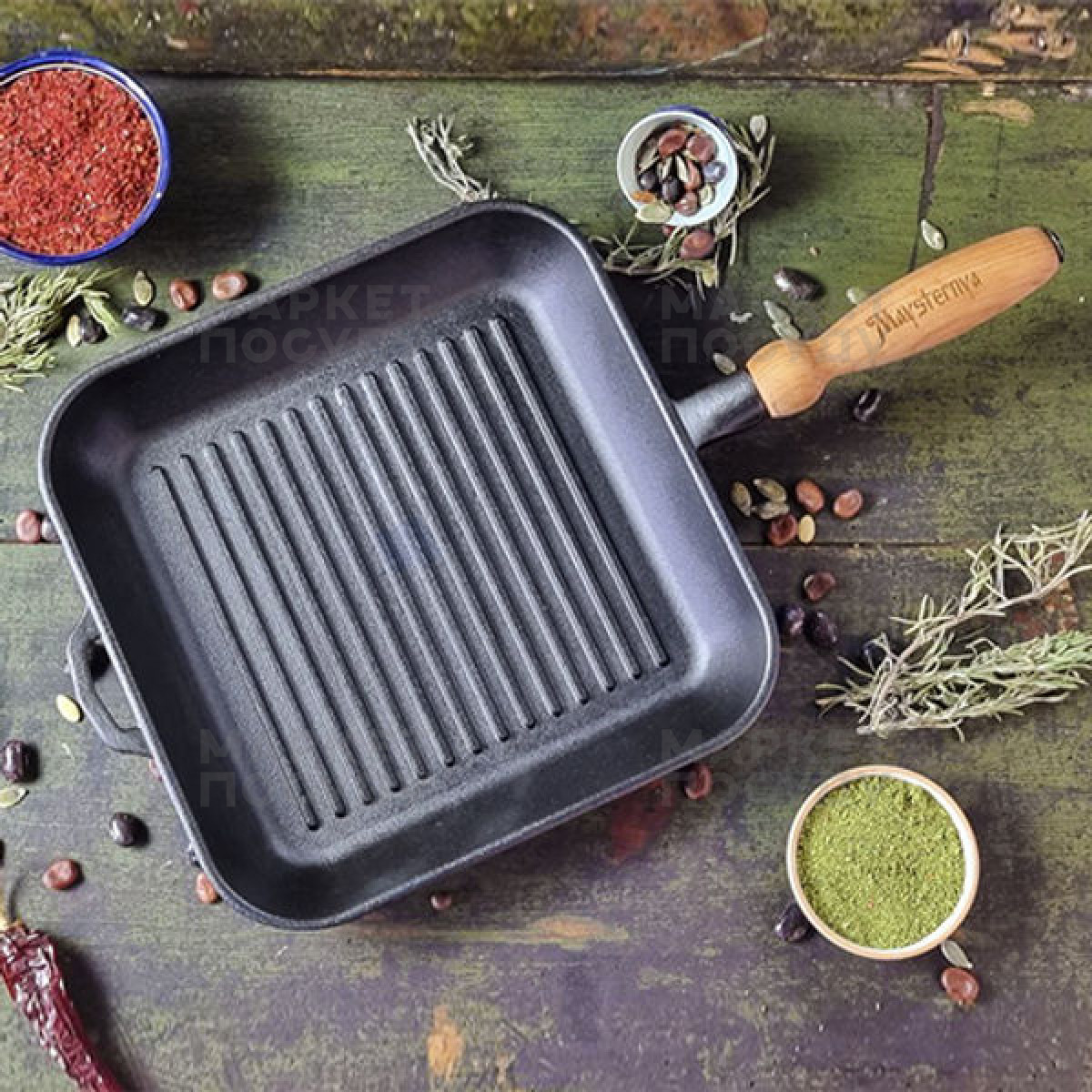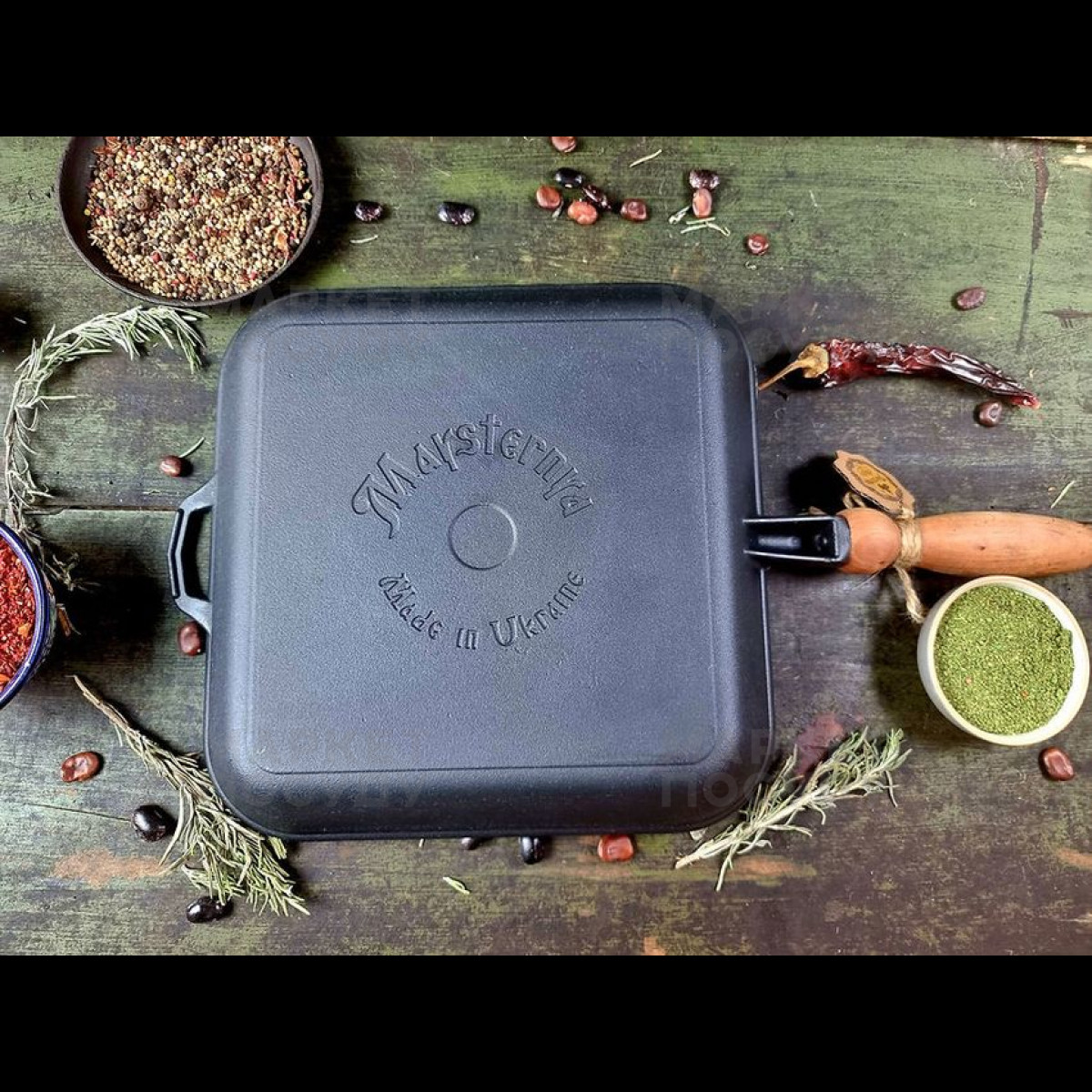 Сковорода-гриль Maysternya 28 см чавунна чорна (T307Ук)