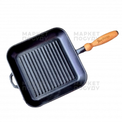 Тяжкий масивний чудовий гриль класичного розміру. Якраз щоб і м'яса нормально розкласти і щоб на плиту помістився. Достатньо високий борт. Розмір робочої поверхні 22х22 см. Ручка з вільхи. Просочена олією. На звичайному гвинті з широкою борозною. Це щоб якщо раптом треба підкрутити, то підкрутити можна просто ложкою або виделкою)