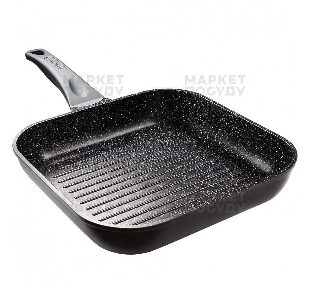 Містка сковорода-гриль дозволить швидко та смачно нагодувати всю родину. Сковорода універсальна і підходить для всіх плит, до того ж її можна мити в посудомийній машині. Корпус сковороди – литий алюміній з полімерним антипригарним покриттям Greblon С3 із трьох шарів. Покриття має високий рівень твердості і стійке до подряпин і інших пошкоджень. Ручка з бакеліту з покриттям Soft Touch ергономічна та зручна у використанні. Під час приготування їжі не ковзає і не нагрівається.