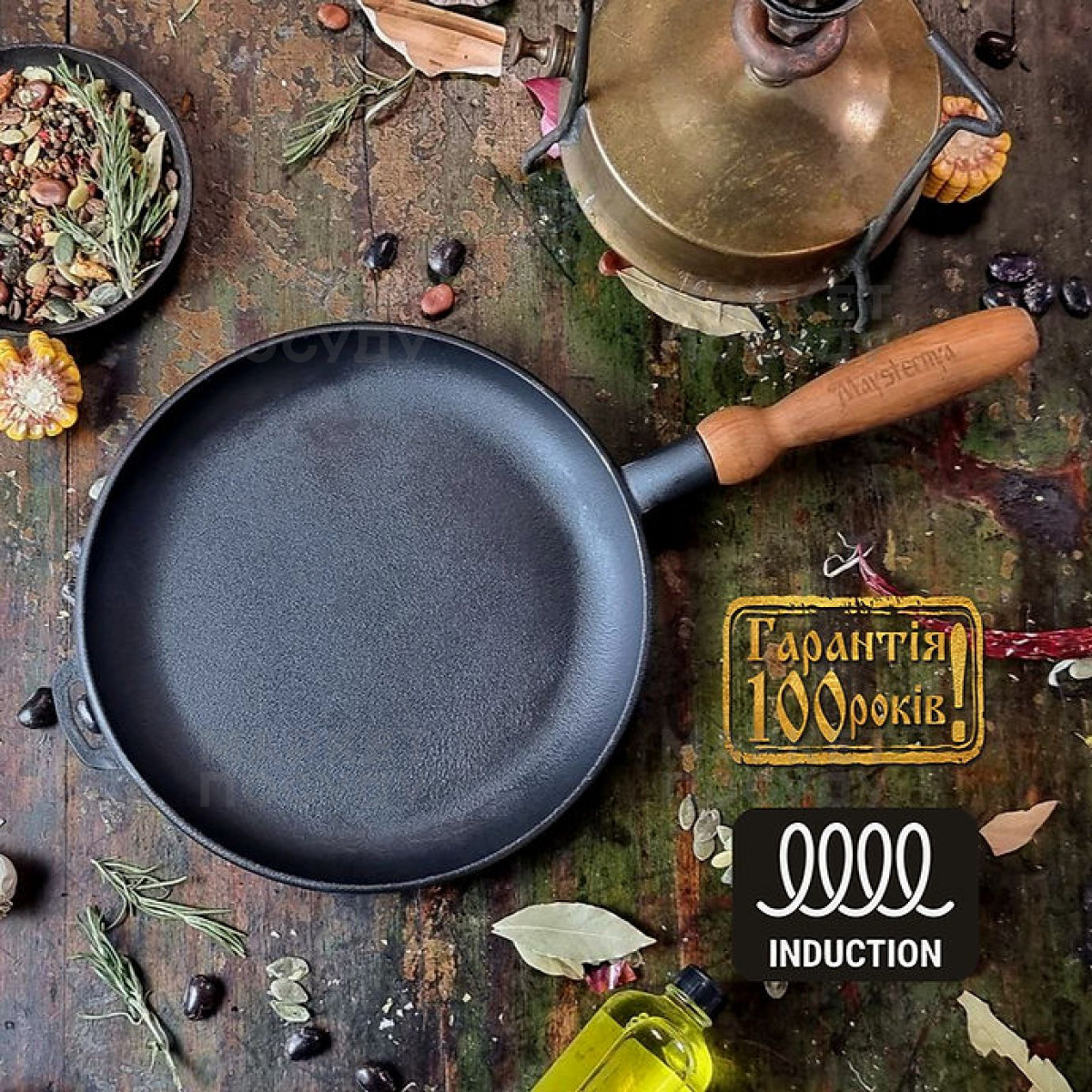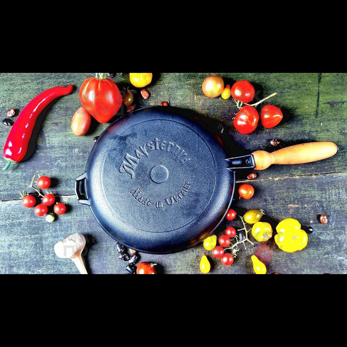 Сковорода для млинців Maysternya 24 см чавунна чорна (T301Ук)