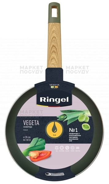 Серія сковорідок Vegeta від Ringel – це відмінний варіант як для приготування страв із соусів, самих соусів та гасіння, завдяки високим бортикам, так і чудовому посуду для розігріву. Виготовлені з високоякісного кованого алюмінію, дані сковороди є міцним посудом із швидким та рівномірним нагріванням. У даній серії використовується надстійке тришарове покриття, яке дозволяє використовувати менше масла при приготуванні.