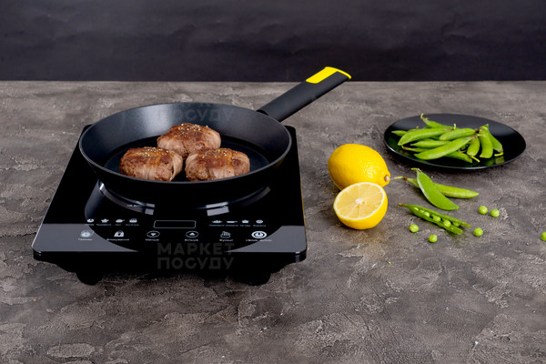 Спеціальний сталевий індукційний диск у донній частині сковороди дає можливість використовувати її на всіх видах плит, зокрема з індукційними, інфрачервоними й склокерамічними.