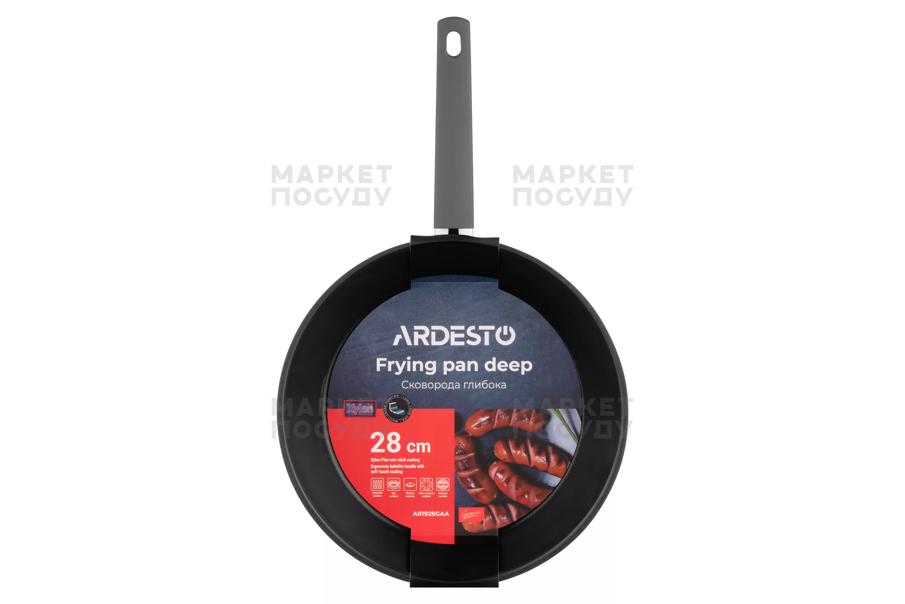 Глибока сковорода Ardesto Gemini діаметром 28 см виготовлена з алюмінію, зовнішня поверхня сковороди виготовлена з нержавіючої сталі.