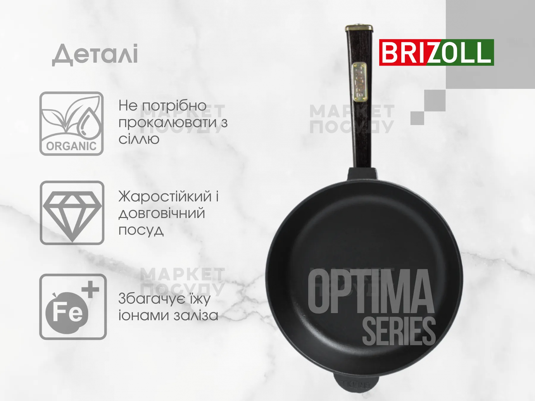 Сковорода універсальна Brizoll Optima 24 см чавунна чорна (О2460-Р1-С)
