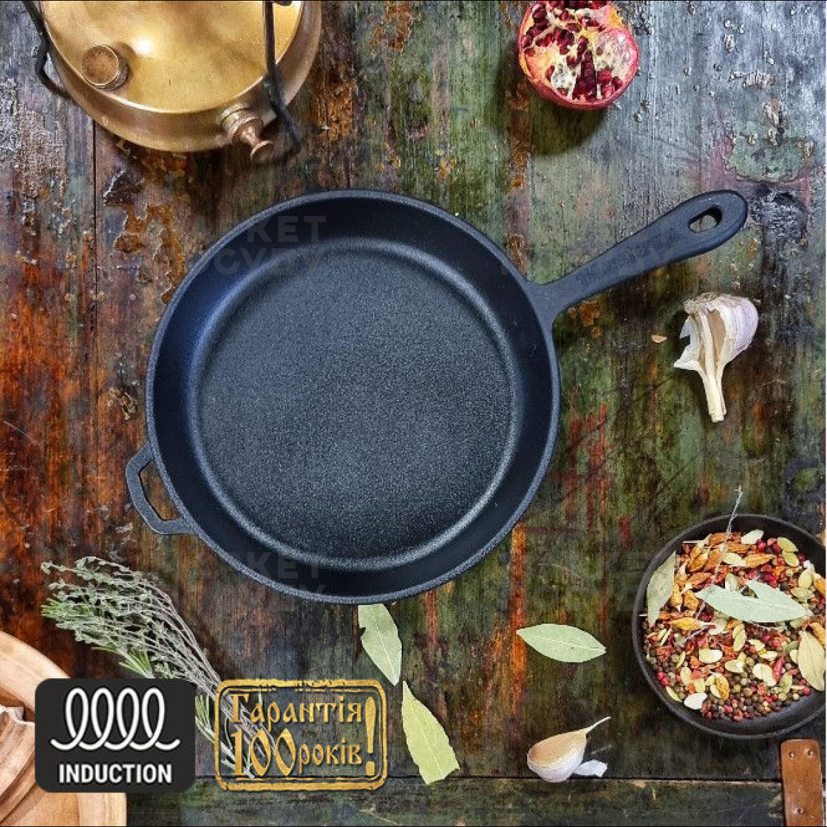 Сковорода універсальна Maysternya 24 см чавунна чорна (Т2013)