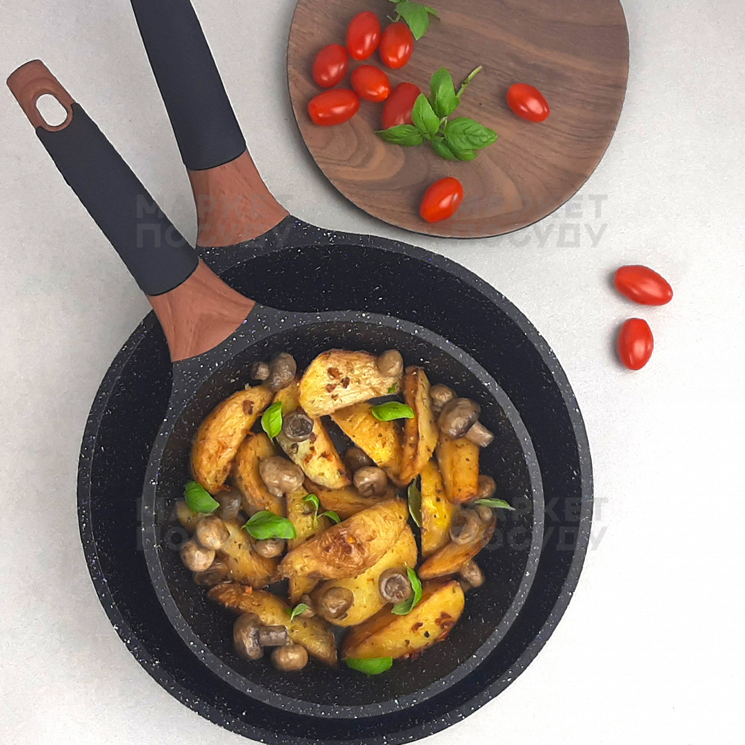 Сковорода універсальна Vinzer Greblon Induction Line 20 см алюмінієва чорна (50501)