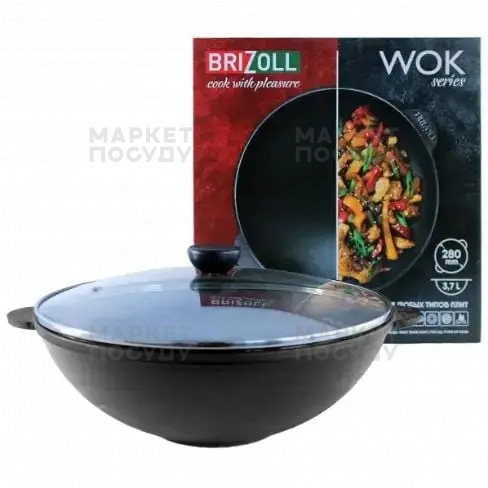 Сковорода Вок (Wok) Brizoll WOK 30 см чавунна чорна (W30-6)
