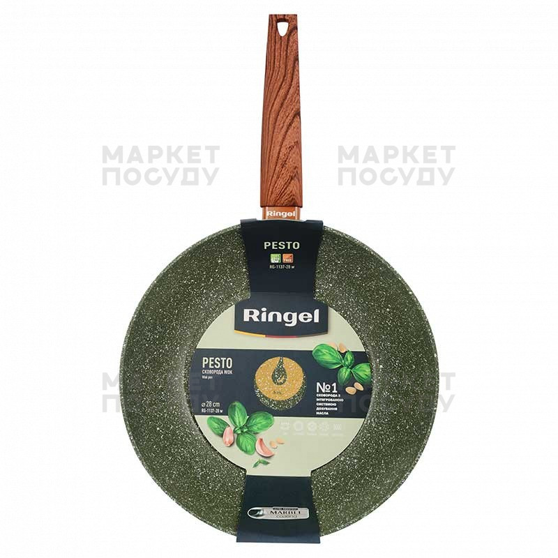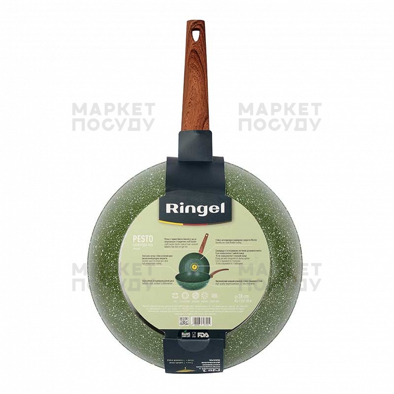 Серія сковорідок PESTO від Ringel є універсальними кухонними помічниками для приготування та розігріву різноманітних страв. Ця сковорода, виготовлена з високоякісного кованого алюмінію товщиною 3,2 мм, є міцним посудом, який нагрівається швидко й рівномірно. Цей асортимент має мармурове антипригарне покриття, що робить його дуже міцним і надійним продуктом і дозволяє використовувати менше масла.
