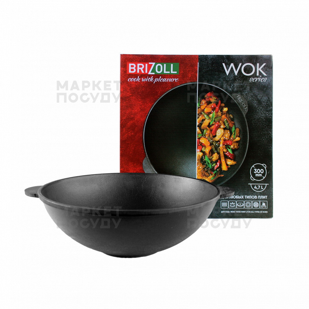 Сковорода Вок (Wok) Brizoll WOK 30 см чавунна чорна (W30)